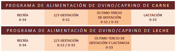 Pienso presentado en distintos tipos de gránulo para administrar a ganado ovino en extensivo. Diseñado para cubrir las necesidades nutricionales reproductivas en los dos primeros tercios de gestación y en el periodo de secado.